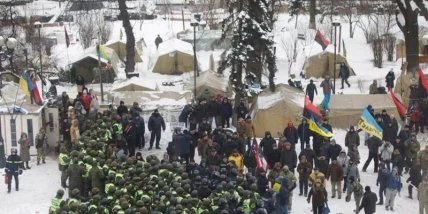 Палаточный городок состоит из двух частей, одна их них находится на проезжей части ул.Грушевского. Полиция призвала митингующих убрать палатки с проезжей части ул.Грушевского, но они проигнорировали призывы. 26 ноября одна из палаток горела, никто не пострадал. Еще один палаточный городок разбит в Мариинском парке неподалеку.