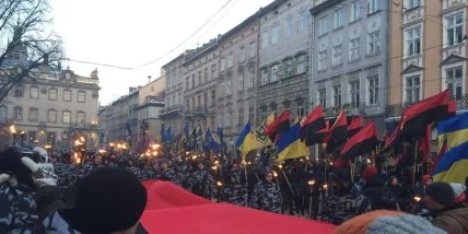 Во Львове прошло факельное шествие в честь павших борцов за свободу Украины под лозунгом "Львов не для польских панов".
