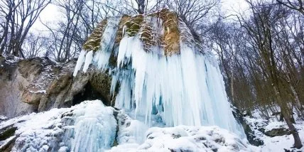 В Ивано-Франковской области в селе Исаков замерз уникальный травертиновый водопад "Девичьи слезы".