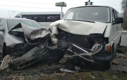 "По данным издания, инцидент произошел напротив торгового центра "METRO". В результате столкновения Volkswagen T4 (Transporter) и Skoda Octavia пострадали водители обеих машин, пассажирка и 10-летний ребенок. С различными травмами они были госпитализированы сотрудниками скорой помощи в больницу экстренной медпомощи", – сказано в сообщении на сайте телеканала в четверг вечером.