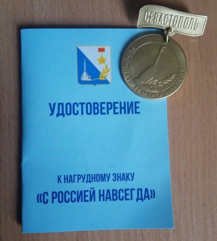 На вкладыше написано, что это медаль в память о "референдуме", который прошел в Севастополе 16 марта 2014 года.