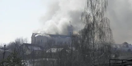 Во Львовской области 24 марта возник пожар на территории бывшего коллегиума иезуитов с часовней, где раньше находилась военная часть.