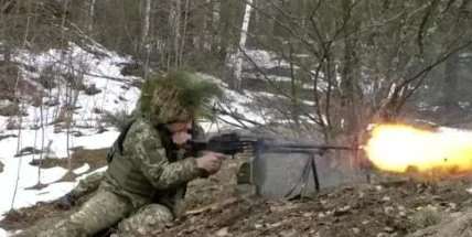 Выстрелы из тяжелого оружия и автоматные очереди раздаются на учениях неподалеку от Житомира.