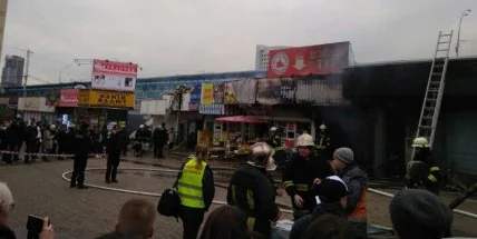Возле станции метро "Левобережная" на Святошино-Броварской линии киевского метрополитена ("красной", М1) произошел пожар в магазине "Красный маркет", из-за сильного задымления станция в настоящее время закрыта на вход и на выход.