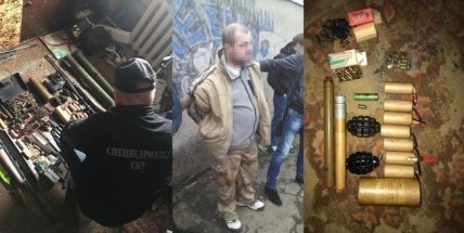 Во время обысков по месту его жительства и работы сотрудники СБ Украины изъяли семь пистолетов и револьверов, три гранаты Ф-1, тротиловую и дымовую шашки, семь взрыв-пакетов, сигнальную мину, семь единиц холодного оружия и около тысячи патронов различного калибра.