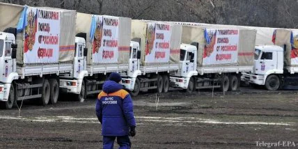 В ОБСЕ рассказали, что команда СММ видела автоколонну в составе десяти грузовиков с надписью "Гуманитарная помощь от России" на русском языке на бортах грузовиков. Автоколонна направлялась через н.п. Молодогвардейск (неподконтрольный Украине, 35 км на юго-восток от Луганска) и Луганск.