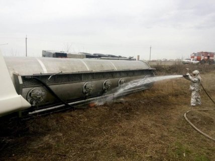 В Запорожской области на автодороге на трассе Энергодар - Бердянск в результате дорожно-транспортного происшествия съехала в кювет и перевернулась автоцистерна, перевозившая 30 тонн топлива.