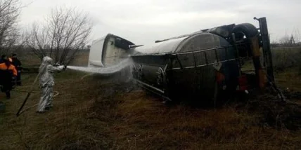 В Запорожской области на автодороге на трассе Энергодар - Бердянск в результате дорожно-транспортного происшествия съехала в кювет и перевернулась автоцистерна, перевозившая 30 тонн топлива.