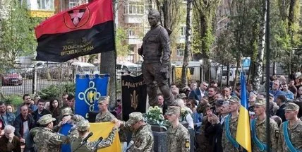 В Киеве открыли памятник бойцу АТО Мирославу Мысле, погибшему в 2016 году в Луганской области, сообщают в Киевской городской государственной администрации.