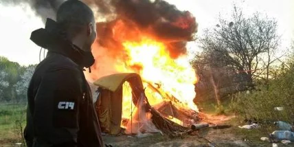 Представители националистической организации С14 прогнали ромов из лагеря на Лысой горе и сожгли их палатки и вещи.