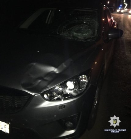 Автомобиль Mazda двигался в направлении Львова. На освещенном нерегулированном пешеходном переходе возле стационарного поста полиции водитель Mazda сбыл патрульного и попытался скрыться.