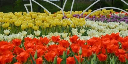 В Киеве на Певческом поле с 27 апреля по 27 мая будет проходить выставка тюльпанов, на которой высадили более 250 000 цветов.