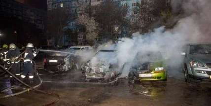 В Днепре на стоянке горели пять авто, едва не погибла семья