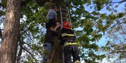 В Ровенской области спасатели помогли мужчине спустится с дерева, куда он забрался, чтобы спасти кота.