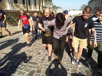 В Киеве представители партии "Национальный корпус", националистических организаций "Национальные дружины" и С14 задержали воевавшего на Донбассе на стороне "ДНР" гражданина Бразилии Рафаэля Маркуса Лусварги и привели его к зданию Службы безопасности Украины.