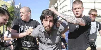 В Киеве представители партии "Национальный корпус", националистических организаций "Национальные дружины" и С14 задержали воевавшего на Донбассе на стороне "ДНР" гражданина Бразилии Рафаэля Маркуса Лусварги и привели его к зданию Службы безопасности Украины.
