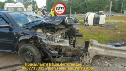В результате такси "вылетело" на зеленую зону и перевернулось несколько раз.
