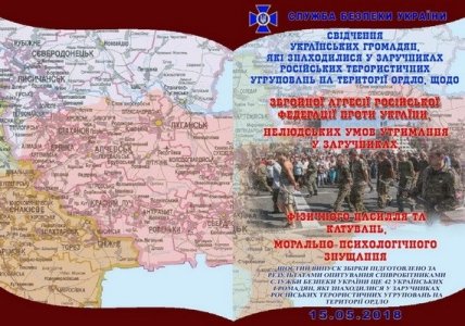 "Служба безопасности Украины продолжает собирать и публиковать показания относительно вооруженной агрессии российских войск против Украины, а также о фактах физического насилия и издевательств над нашими гражданами в застенках на временно оккупированных территориях Луганской и Донецкой областей. Рассказы еще сорока двух бывших заложников, которые незаконно содержались боевиками в нечеловеческих условиях и подвергались пыткам от 189 до 1083 суток, опубликованы на страницах очередного информационного бюллетеня. Это уже шестое документальное издание, подготовленное сотрудниками спецслужбы по результатам опроса освобожденных украинских граждан", — идет речь в сообщении.