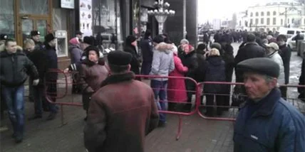 На углу Крещатика и улицы Трехсвятительской правоохранители пропускают людей за ограждение только по журналистским пропускам и по документам, свидетельствующим, что человек работает в одном из 2-х зданий, попавших в зону милицейского оцепления.