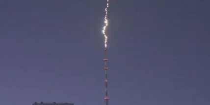 В сети показали впечатляющее видео попадания молнии в киевскую телебашню