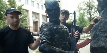"Молодоый парень в амуниции и маске на лице вышел из такси возле Кабмина и двигался в направлении Верховной Рады Украины, где состоялась массовая акция. Его задержали: во время поверхностного осмотра у него изъяли предмет, похожий на карабин, два кастета, ножи и дымовую шашку" - позже сообщили в полиции Киева.