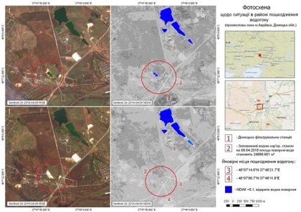 Отмечено, что на спутниковых снимках видно заполнения водой карьера площадью водной поверхности около 24 тыс. м² (по состоянию на 9 апреля 2018) в районе Ясиноватской развязки (1,4 км от Донецкой фильтровальной станции). Также на снимках зафиксировано заболачивание территории вблизи трассы водопровода.