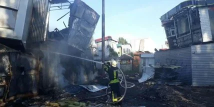 В Киеве на улице Народного Ополчения пожар уничтожил ряд МАФов.
