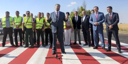 Петр Порошенко открыл отремонтированную дорогу Днепр - Запорожье.
