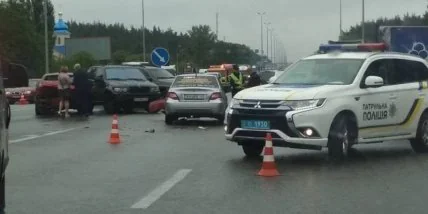 На Житомирской трассе в районе села Капитановка в пригороде Киева произошло масштабное дорожно-транспортное происшествие, столкнулись 5 автомобилей. Как сообщили в группе dtp.kiev.ua в Facebook, водитель автомобиля Daewoo Nexia не выдержал безопасной дистанции и спровоцировал ДТП.