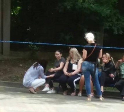 В Харькове в окружении подруг и женщины-конвойной на лавочке возле ЦКБ №5 была замечена Елена Зайцева, которая в октябре 2017 года насмерть сбила 6 людей.