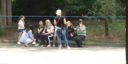 В Харькове в окружении подруг и женщины-конвойной на лавочке возле ЦКБ №5 была замечена Елена Зайцева, которая в октябре 2017 года насмерть сбила 6 людей.