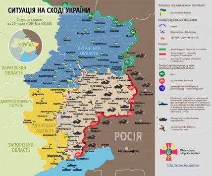 "На Луганском направлении в течение минувших суток зафиксировано 11 прицельных обстрелов со стороны противника, из них пять - с применением оружия калибра свыше 100-мм. На Донецком направлении зафиксировано 17 вражеских обстрелов, преимущественно из гранатометов и стрелкового оружия разных типов и калибров. Активность противника фиксировалась в районах н.п.Авдеевка, Верхнеторецкое, Водяное, Гнутово, Лебединское, Марьинка, Новотроицкое, Павлополь и Широкино. В результате все 28 вражеских обстрелов, которые были зафиксированы в течение минувших суток вдоль всей линии столкновения, идентифицированы как прицельные", - отметил Мотузяник.