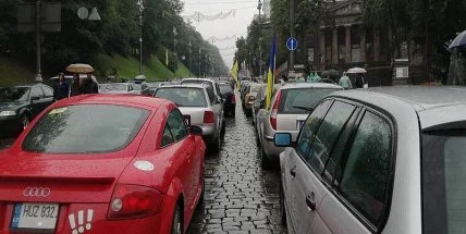 Автомобилисты на "евробляхах" перекрыли дорогу в центре Киева