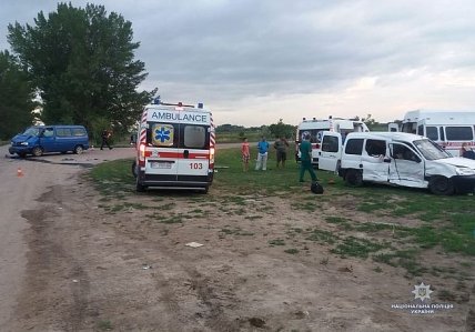 "На месте дорожно-транспортного происшествия полицейские предварительно установили, что 57-летний житель Киевской области, управляя автомобилем "Citroёn Berlingo", двигался со стороны с. Нововладимировка, не предоставил преимущества в движении автомобилю "Volkswagen Multivan", под управлением 43-летнего жителя Винницкой области. В результате чего произошло столкновение. Во время ДТП пострадали 8 граждан. Работники скорой оказали им медицинскую помощь. 2 взрослых и 4 детей (в возрасте от 9 до 13 лет) с различными травмами госпитализировали в больницу", - рассказали в полиции.