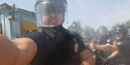 В НСЖУ заявляют, что полицейский сознательно распылил газ из баллончика в лицо фотокорреспондента агентства Associated Press Ефрема Лукацкого. Инцидент произошел в ходе столкновений с полицией через застройку в одном из районов Киева в 28 июля.