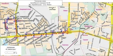 На этот период движение троллейбусов организовано по трассе: ул. Чернобыльская – ул. Академика Ефремова – просп. Академика Палладина – просп. Победы – ст. м. "Нивки".
