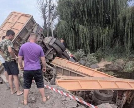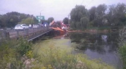 "Хлебное ДТП": под Хмельницким фура с зерном слетела с моста в реку