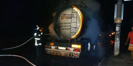 Огнем пожара уничтожены 2 колеса, а также частично внешние конструкции цистерны.