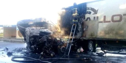 В Ровенской области на участке трассы "Киев-Чоп" автомобиль DAF 95 столкнулся с молоковозом, водитель грузовика сгорел заживо, другой с ожогами в больнице.