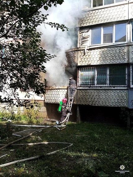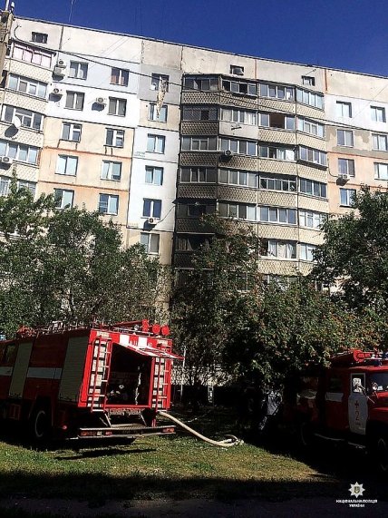 На первом этаже харьковской 9-тиэтажки случился взрыв бытового газа с последующим горением.