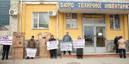 Сегодня в Херсоне около 15 граждан без определенного места жительства пикетировали здание городского отделения Бюро технической инвентаризации, обвиняя чиновников в коррупции.