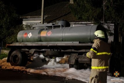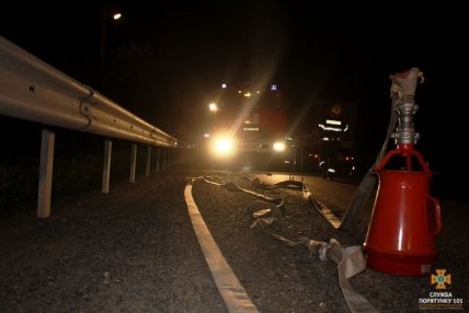 "15 августа в 21:10 в Службу спасения поступило сообщение о том, что в селе Озерная Зборовского района Тернопольской области произошло дорожно-транспортное происшествие. Как выяснилось, перевернулась цистерна грузового автомобиля. Ситуация осложнялась тем, что данная емкость была наполнена дизельным топливом", - говорится в сообщении.