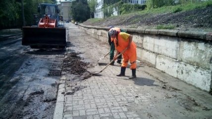 Самая сложная ситуация, по словам руководителя "Киевавтодора", наблюдается на улице Антоновича, где в результате непогоды разрушен участок проезжей части. "На Антоновича по заказу "Киевтепленерго" ведутся работы по прокладке тепловой сети. По предварительному заключению, в связи с проведением работ с нарушением технологии, при интенсивных осадках в ночь с 18 на 19 августа произошел значительный выброс грунтовых масс на проезжую часть. А это привело к закупориванию дождеприемных колодцев и значительно увеличило поверхностный сток на дороге. Значительные массы дождевой воды через открытые котлованы пошли на проезжую часть. Следствием этого стало разрушение конструктивных слоев дорожной одежды на участке от ул. Физкультурной до Жилянской. Сейчас дорожники устраняют последствия этой ситуации", - отметил Густелев.