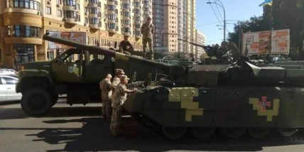 В Киеве украинский танк заглох посреди дороги по пути на генеральную репетицию военного парада, посвященного Дню Независимости Украины.