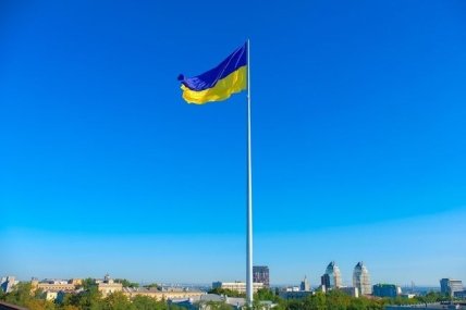 В Днепре на высоту свыше 70 метров подняли рекордный украинский флаг