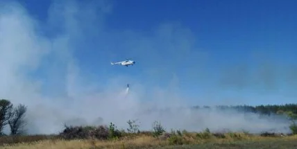 В 16:05 пожарный вертолет ГСЧС Ми-8 начал тушить пожар с воздуха.