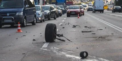 В Киеве отпавшее колесо стало причиной тройного ДТП