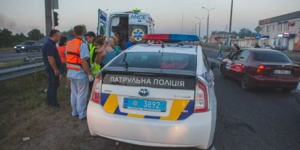 В Киеве отпавшее колесо стало причиной тройного ДТПНа месте аварии работал патрульный экипаж и несколько бригад скорой помощи. Родители погибшей девочки были в шоковом состоянии.