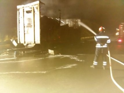 Вчера, 30 августа, на 228 км автодороги "Киев-Одесса", во время движения возник пожар грузового автомобиля Scania.