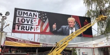 В Черкасской области паломники, по традиции прибывшие на празднование иудейского Нового года, установили баннер в честь президента США Дональда Трампа.